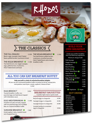 Our chefs are cooking up a storm daily at Rhodos with breakfast (7.30 – midday) lunch (midday – 2pm) and dinner (6.30pm – 9.30pm) all served throughout the week. We've got daily specials, gourmet burgers, succulent steaks and marinated BBQ ribs to name just a few delicious options.
